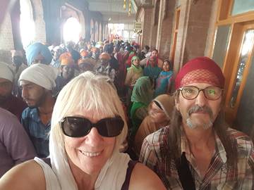 The Museum of Partition and the War Memorial Museum (over at the end of the yellow bus run; more about that later) both informed us why Pakistan and India have issues. Of course, it was all from India’s side and sounded like propaganda. It is always “who to believe” in these situations. I think the main beef now is that Pakistan wants Kashmir and India basically says, ‘go get stuffed’. It is quite terrible what happened with the partition, how both countries suffered so much and still do. The War Memorial Museum took us back to the Sikhism start and all that befell them along the way. I have lots of pamphlets to be informed of what they are up to: ‘Notes towards Definition of Sikhism’, ‘A Brief Introduction to The Sikh Faith’, ‘The Golden Temple’, and ‘Guru Granth Sahib “The Scripture of Sikhism”’. All this stuff to read while we wait for our plane back to Delhi at the Amritsar Airport; and our plane is already delayed by an hour so if I ever stop writing I will have more time to read. Bottom line from all I have read and museums and speaking to folks is that the Sikhs believe all religions are under the same god – which is cool and groovy, but why then is there so much division in this part of the world? Apparently, the Sikhs stronghold is in Lahore, Pakistan, and their second place of coolness is here in Amritsar. I have lots to learn. And they never cut their hair. I haven’t for more than two-years, so I am on the way, except, I am not going to cover it under one of those turbans.