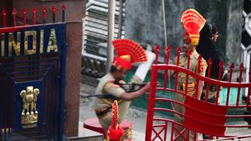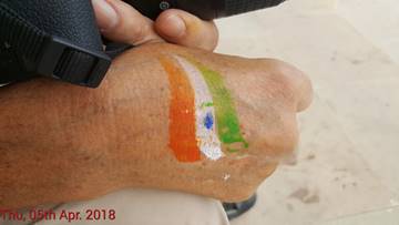 When we got to the parking area – about 45-minutes from home to the border; I got hustled into purchasing a cap with India on it and having my hand painted in India flag colours. OK, it was all for less than two-bucks USD, but still, once again I got hustled. Narda declined, she is not taking sides. With India beating Australia in cricket once again (did I get that correct?) I should cheer on Australia, even though I don’t follow cricket and after twenty-two years living in Australia, I have no idea what the rules are except that after three or four days sometimes it is a tie. What a stupid game.