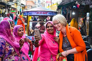 Some last photos of our trip – Delhi April 10 – 13th. They really sum up all four trips to Delhi: Narda having selfies with locals, amazing traffic, wonderful and modern metro, and rickshaws.