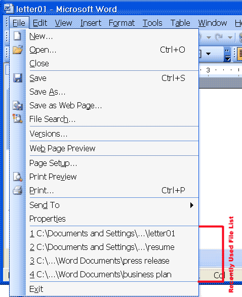 If you enable the recently used file list, clicking File displays the most recently opened files near the bottom of the drop-down menu. You can click the file name to open the file quickly. Setting Options Before proceeding, turn on the Status bar, Horizontal scroll bar, Vertical scroll bar, nonprinting characters, and the recently used file list. Follow the procedure outlined here: