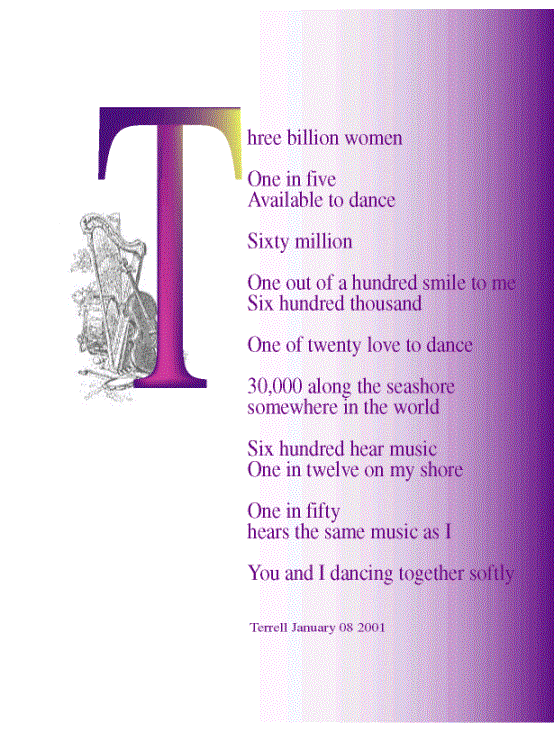 WEEKLY ROMANTIC POEM FOR Saturday, 13 January 2001 NEXT/PREVIOUS/ HOME