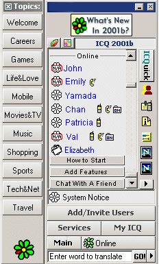 EXCITE CHAT, Text-based and graphics-based chat, events, and web