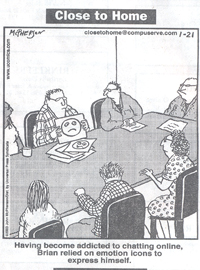 Conversational process, according to analysts in many fields of communications[1] is rich in a variety of small behavioural elements, which are readily recognised and recorded. These elements combine and recombine in certain well-ordered rhythms of action and expression. In person-to-person off-line confrontation there results a more or less integrated web of communication which is the foundation of all social relations (Guy & Allen, 1974, p. 48-51). On-line chatrooms as an instance of electronic text-based communication also use many of these small behavioural elements, evolving at the same time system-specific techniques such as emoticons, abbreviations and even pre-recorded sounds provided by the chatroom (whistles, horns, sound bites or laughter). The full web of on-line exchange and exchange relational modulation devices however remains unmapped, and unless every word written on-line is captured it never will be mapped and analysed fully. In this study of seven case studies I capture and sample a moment in time of these on-line exchange behaviours, and look at them through the lens of several linguistic discourse theories.