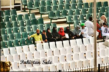 smaller crowd of Pakistanis, trying to match us. The loud speakers on each side